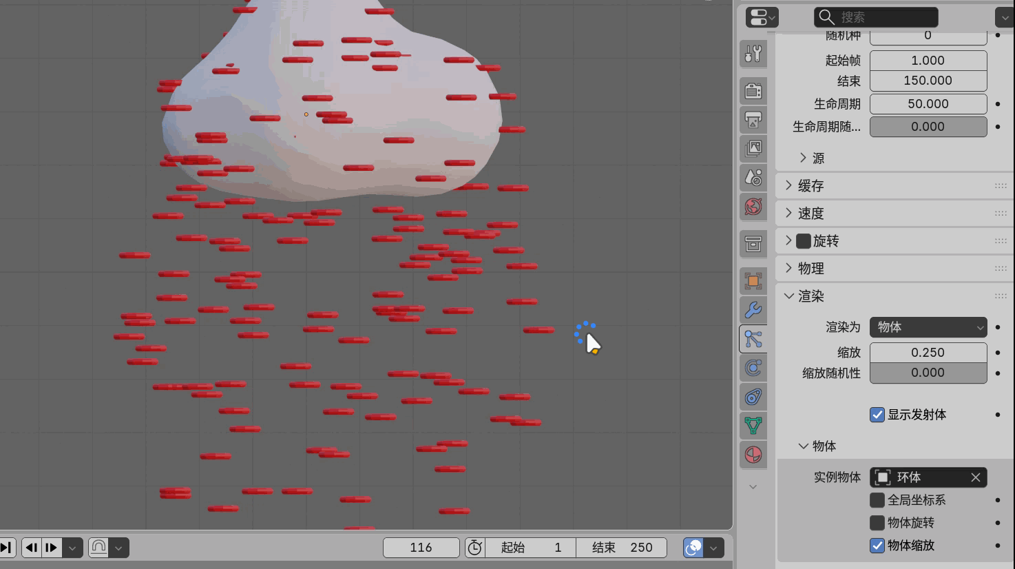 创建圆环,编辑模式下F填充,圆环添加粒子,力场权重重力为0,生命周期为100
