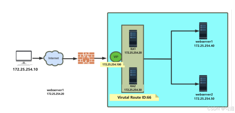 | KA1 | 172.25.254.20 | Master | Keepalived 主节点 |