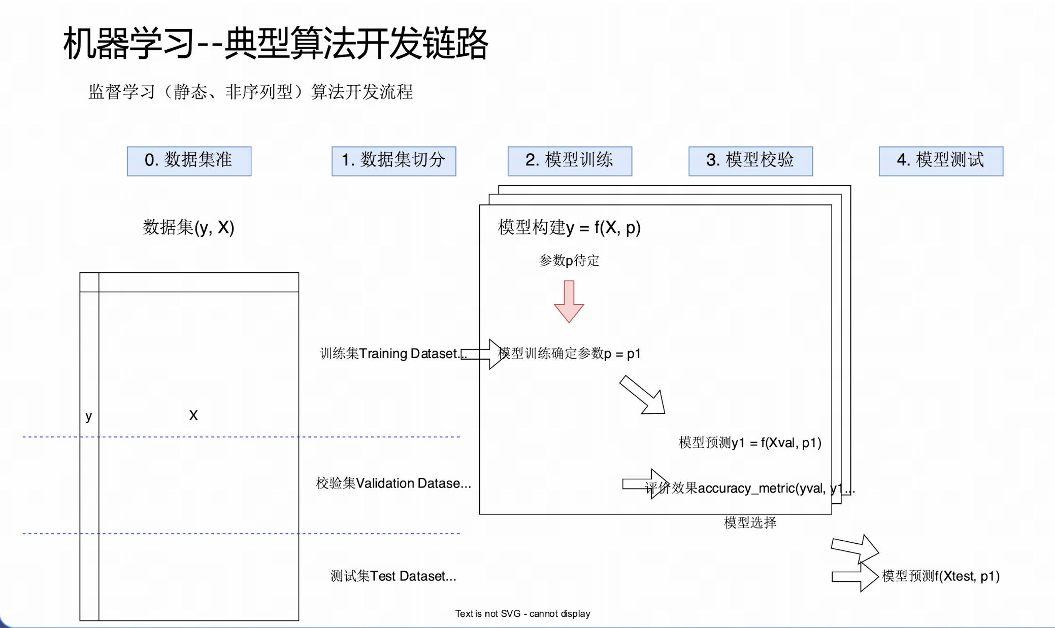 - 算法:利用算力,在给定模型结构的框架下,在数据y~x的监督下,找到最优参数实现拟合