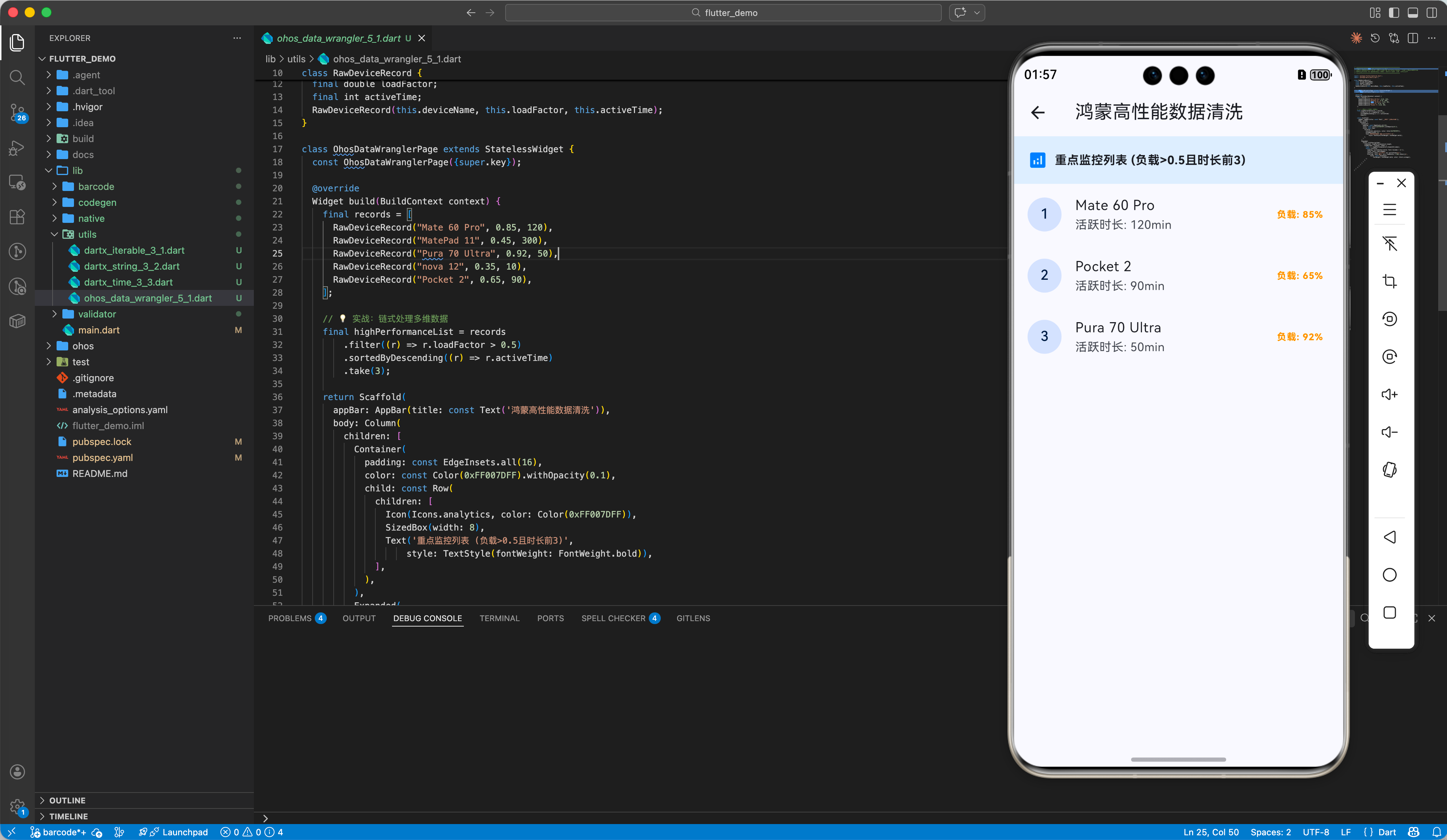 我们将构建一个针对鸿蒙复杂多维业务数据的清洗服务,演示如何利用 DartX 实现类似底层 SQL 或 Python Pandas 一般的流式转换体验。