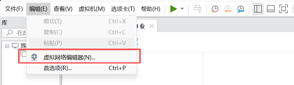 打开菜单栏的 编辑 -> 虚拟网络编辑器。如下图所示: