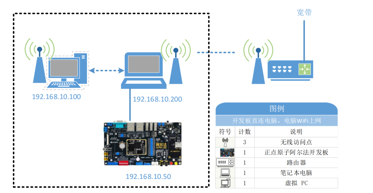 设备:电脑(Windows)、正点原子 Linux 开发板(出厂系统)、路由器/交换机、直通网线。