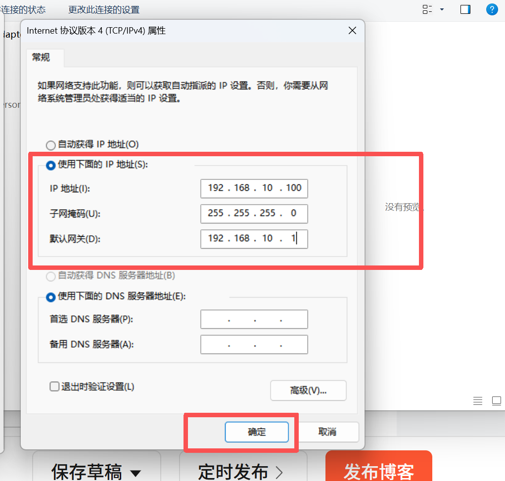 IP 手动设置为192.168.10.100