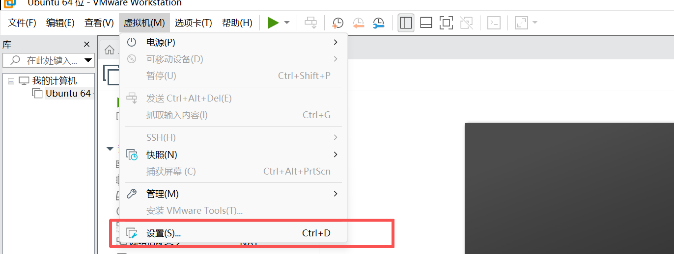 打开 VMware Workstation 里的 虚拟机 ,点开设置选项。