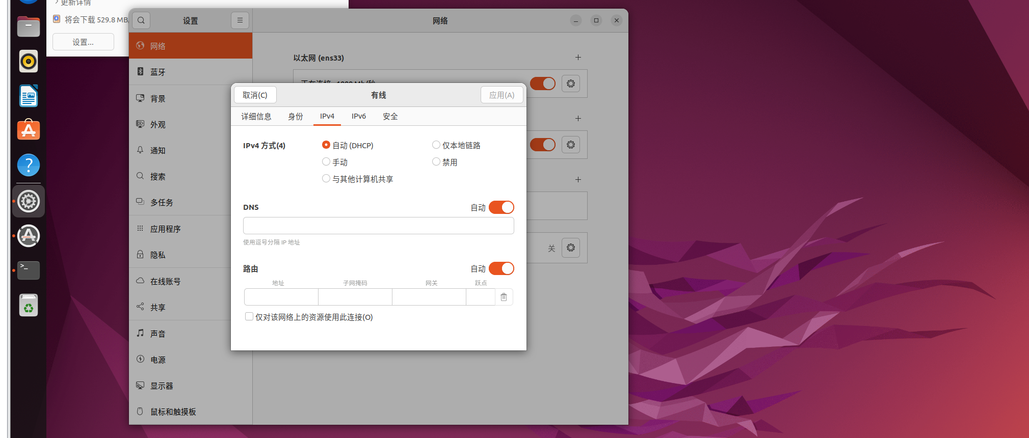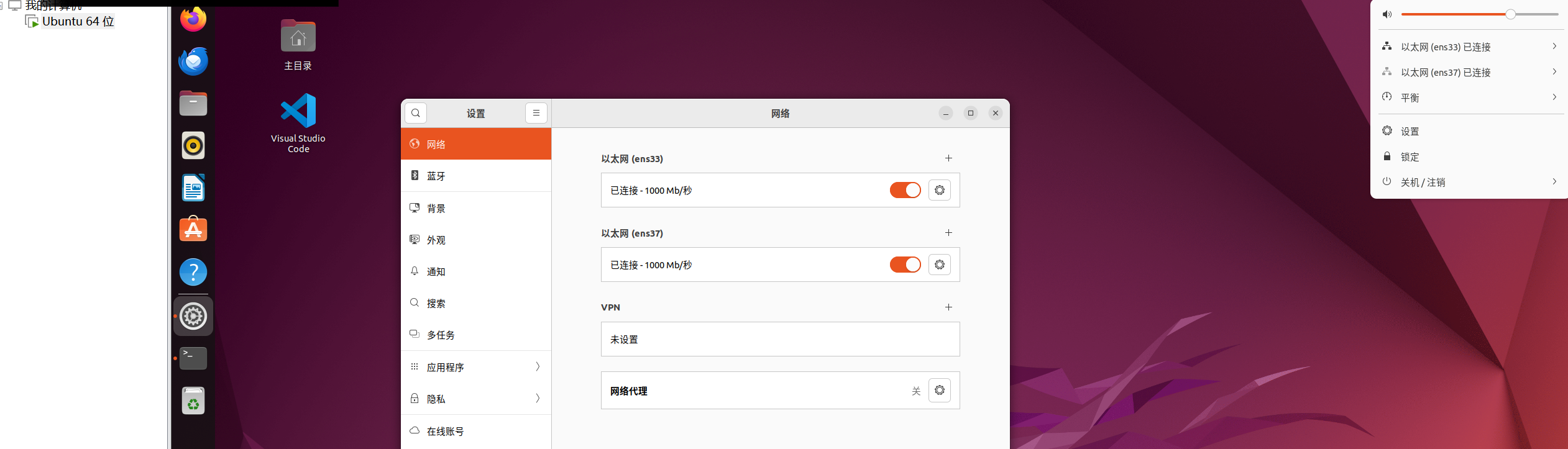 启动虚拟机,打开 Ubuntu 的网络设置 。