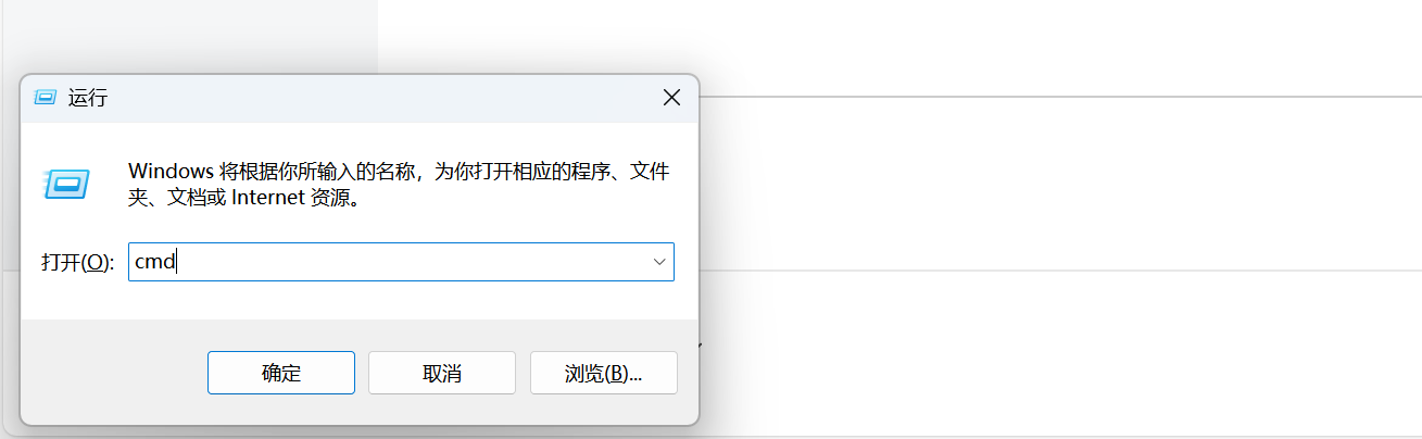 查看 Windows 主机的 IP:在 Windows 端按下 win + R 快捷键打开运行栏,输入 cmd 指令