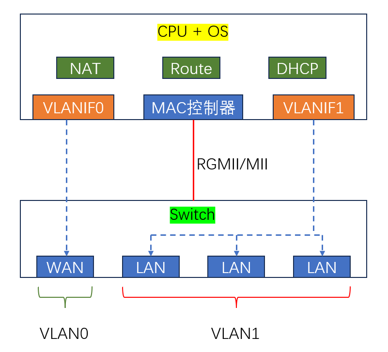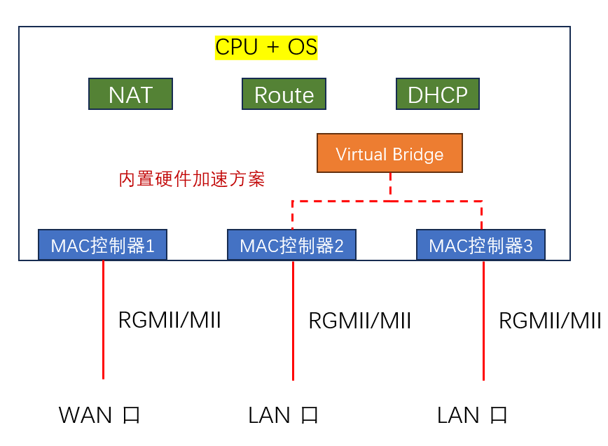 最终,对外显示的,LAN 口 IP 就是 Virtual Bridge 的 IP。 WAN 口 IP 就是 MAC 控制器 1 的 IP。