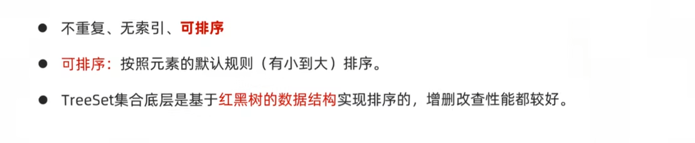TreeSet底层的数据结构是红黑树,忘了再去看视频