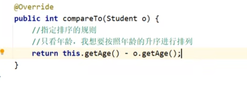 注意:这里的compareTo就是不对对象进行排序时使用的方式