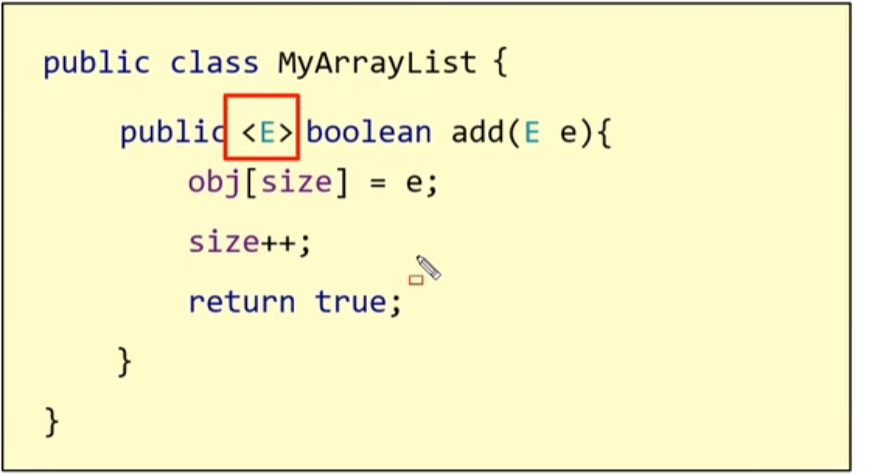 如果想要使任意的数据类型都可以添加进集合里,可以采取泛型方法(E)来实现