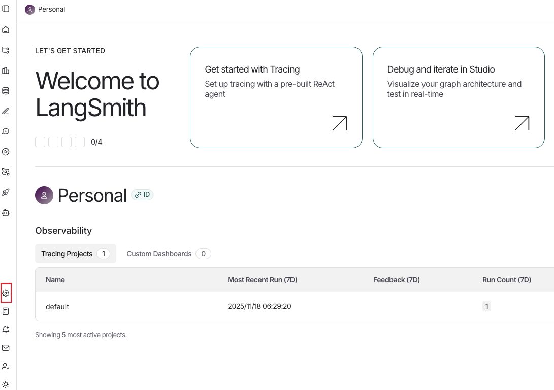 使用提示词模版库之前需要先到LangSmith官网上申请一个api_key,官网地址:https://smith.langchain.com/