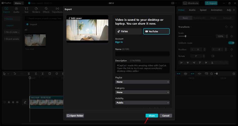 保存到本地,或直接分享至 TikTok、YouTube 等平台