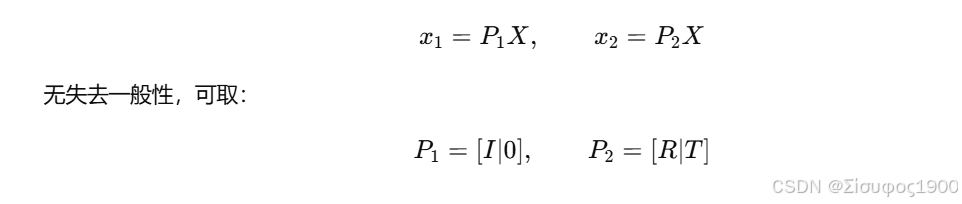3D 点 X在两个相机的成像点满足: