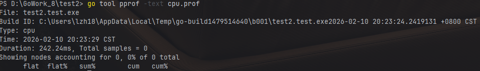 go test -cpuprofile=cpu.prof会运行该目录下所有的Test和Benchmark及其它函数。通常我们会配合-run或-bench参数来缩小剖析范围。关于原理的描述:
