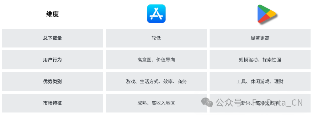 - 平台差异明显:Google Play推动规模,App Store聚焦高意图细分市场。