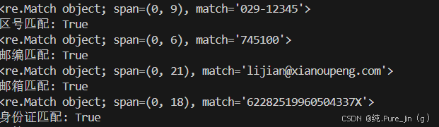 print("邮编匹配:", re.match(pattern_post, test_post) is not None)