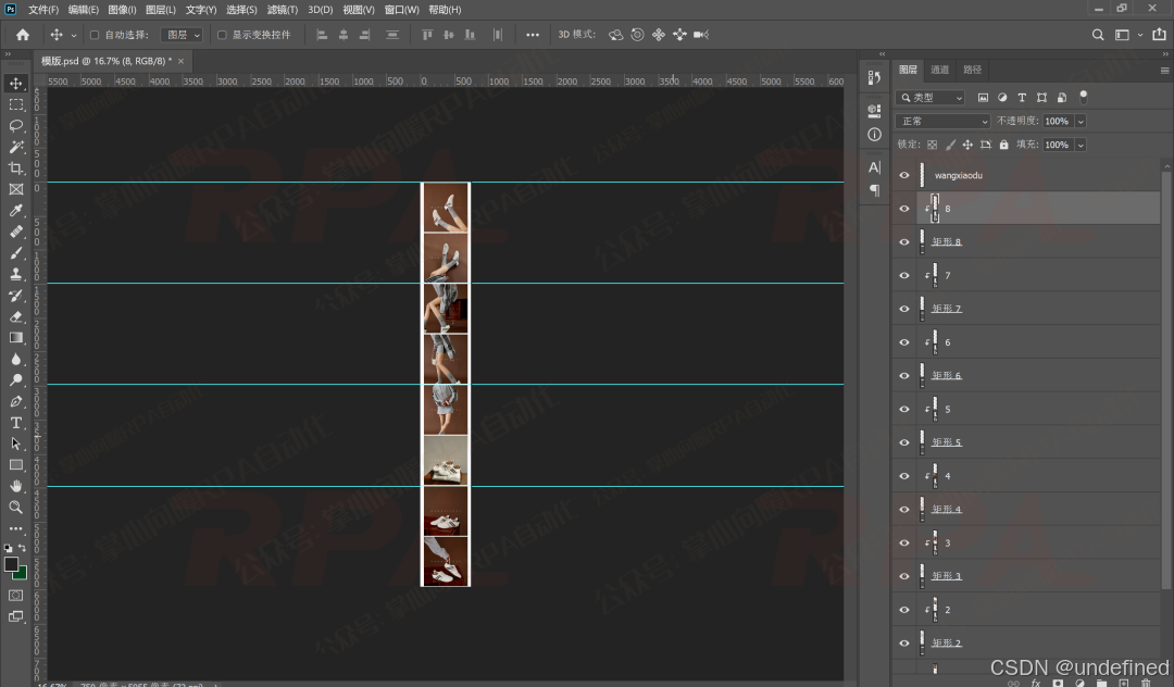 其中,PSD 模板中预设了8个矩形图层,图层名称全部规范命名。
