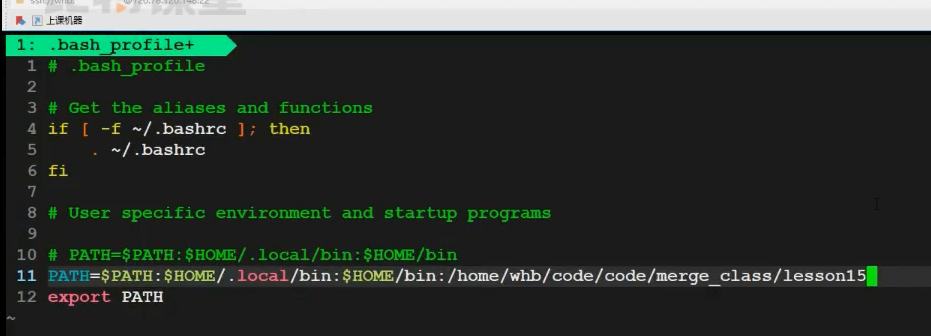 cd ~ ls -al vim .bashrc vim bash profile 配置文件的内容就是bash profile要求用户加载bashrc 要求加载etc下的,系统登录时产生bash进程,读取这两个文件内容,创建环境变量