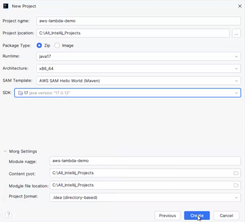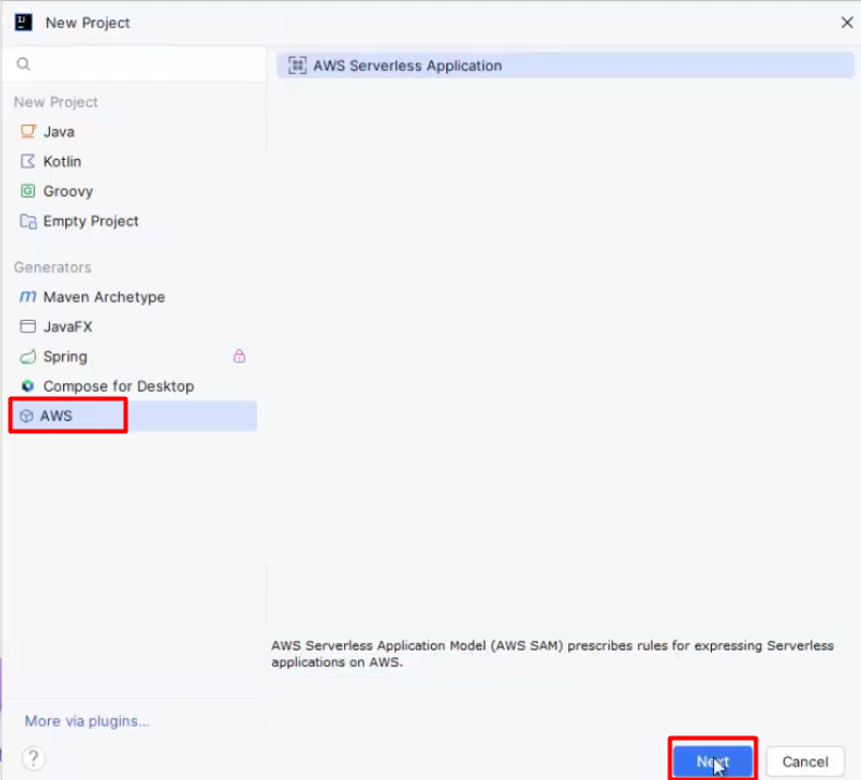 使用IDEA创建(确保安装插件AWS Toolkit)