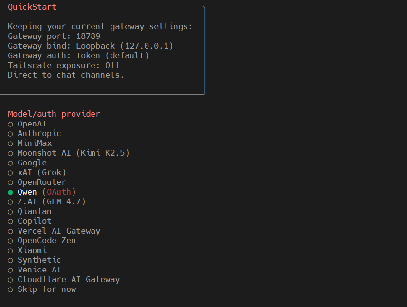 就此准备工作完成,可以开始安装openclaw