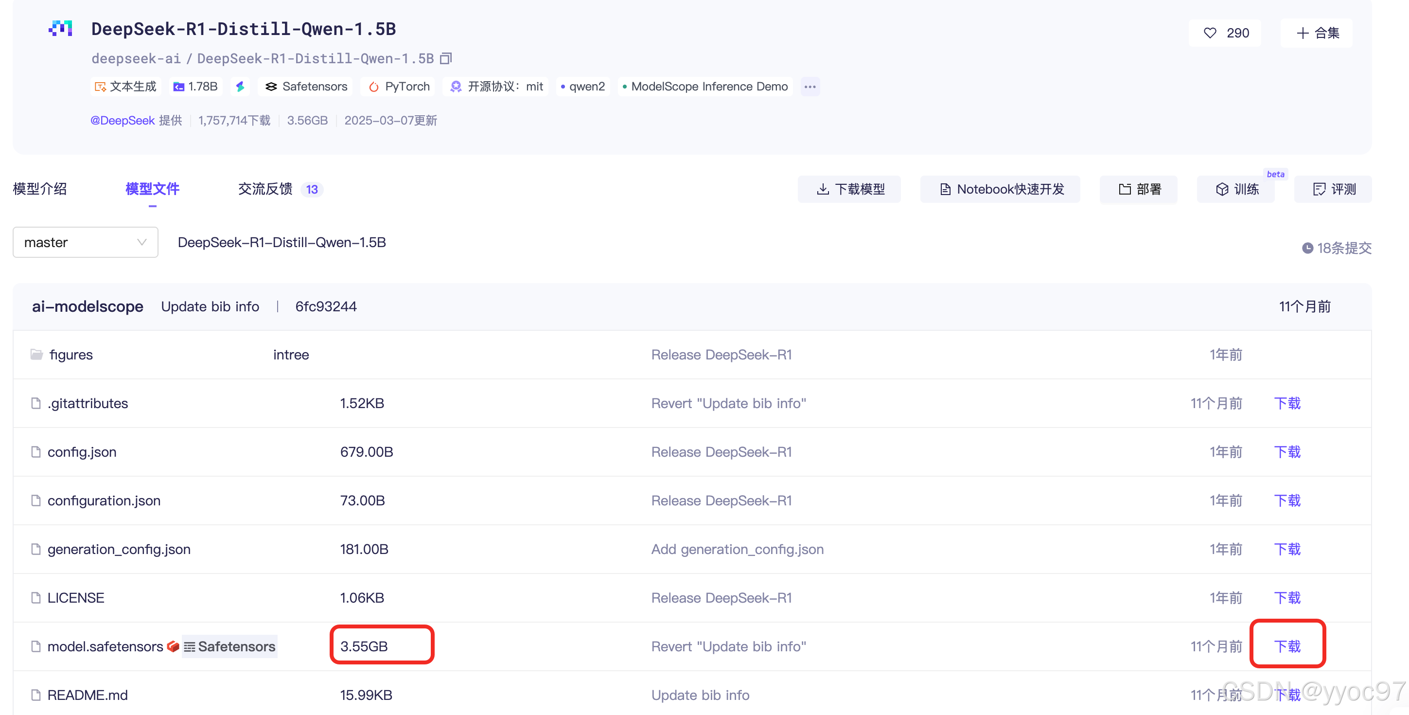在modelscope找一个较小的模型: DeepSeek-R1-Distill-Qwen-1.5B,可以通过git方式下载