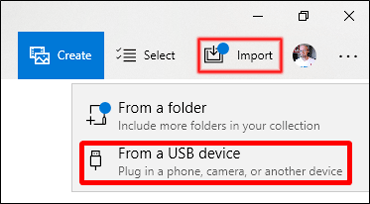 步骤2.单击右上角的"导入",然后选择"从 USB 设备"。