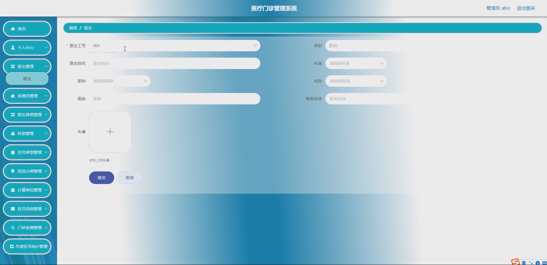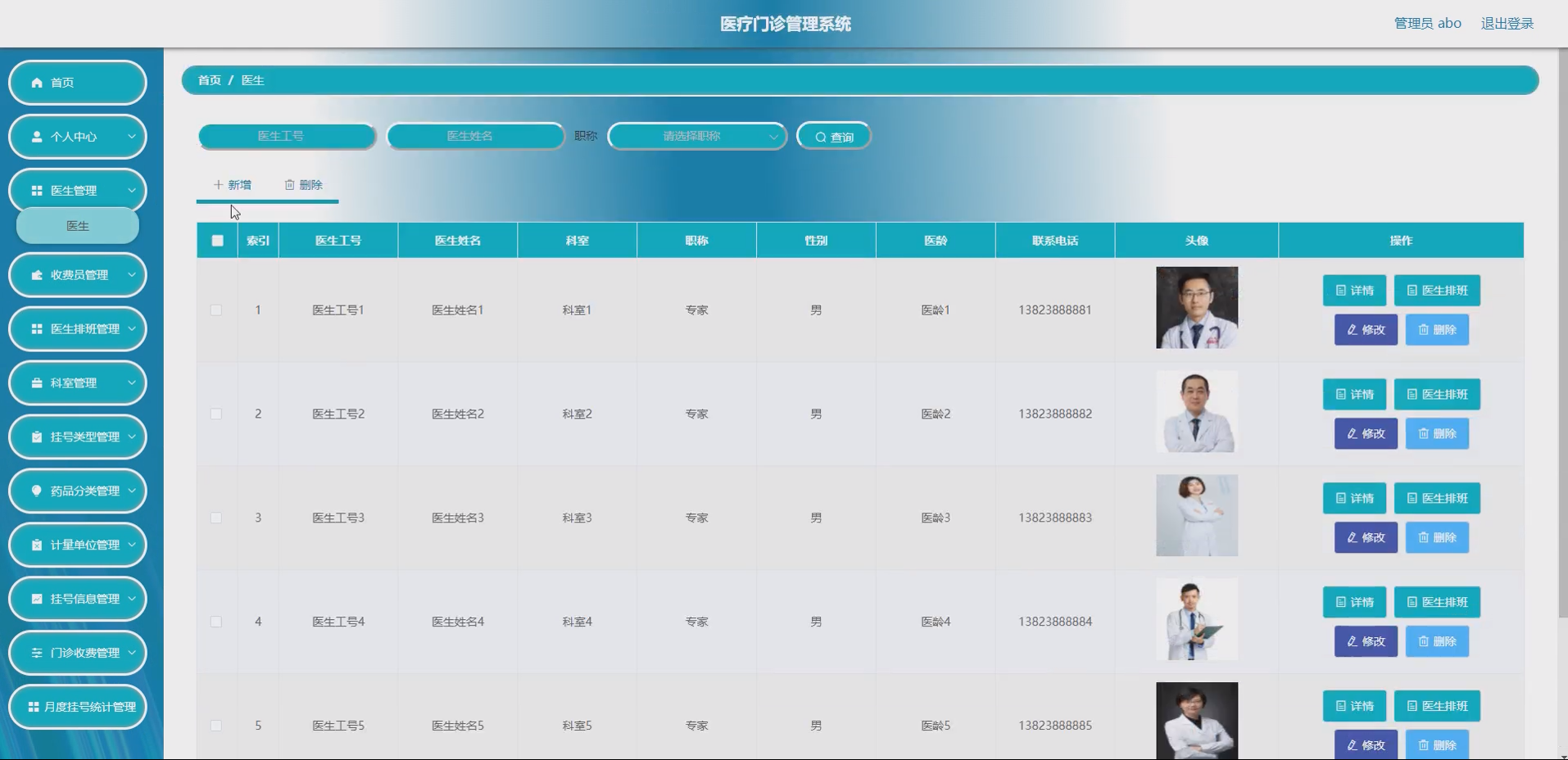 医生模块:实现医生信息的录入、修改、删除、查询功能,管理员可维护医生信息,医生可查看个人排班、开药记录、就诊病历;