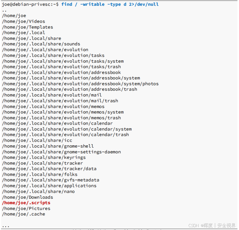 丢弃权限拒绝的错误输出,保持干净 | find / -writable 2>/dev/null |