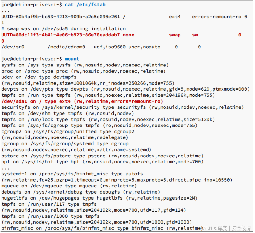 🔹 mount ------ 当前已挂载状态: 反映此时此刻 的挂载情况,与 /etc/fstab 可能不一致。