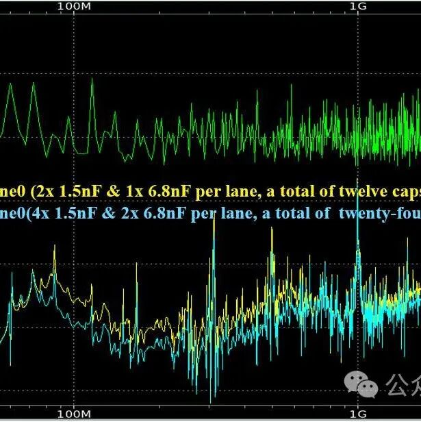 当走线和过孔(VIA)的电感与电容形成谐振电路时,会产生谐振现象,导致信号出现不必要的振荡。这些振荡会造成严重的信号衰减,包括抖动增大和眼图张开度减小。对于奈奎斯特频率为26.5625 GHz的100G PAM4以太网,在高频段可能会出现谐振现象,此时走线和过孔(VIA)的寄生电感和寄生电容可能会降低整体信号质量。