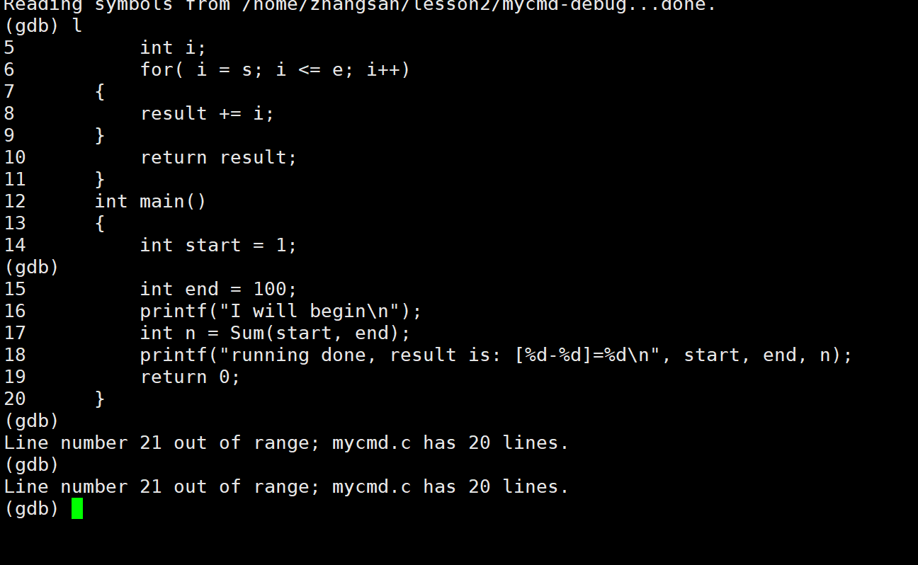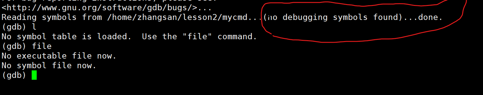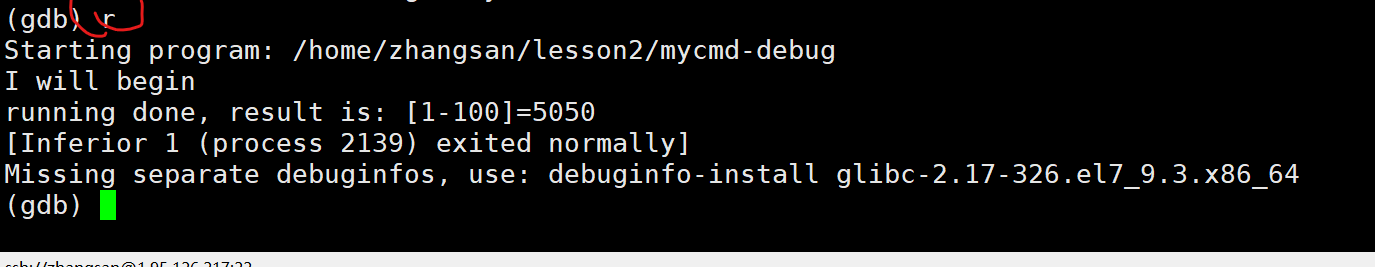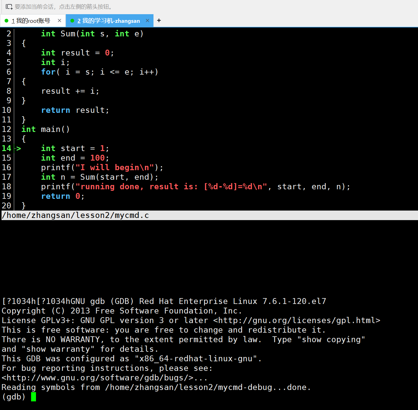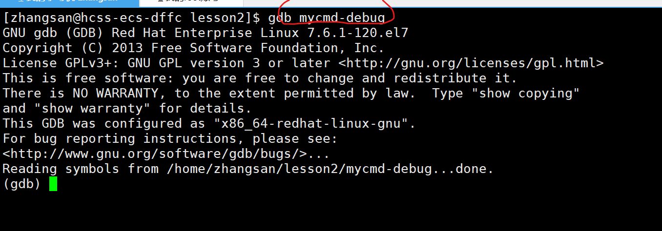 在xshell中输入:gdb mycmd,启动调试器;输入quit,退出gdb,