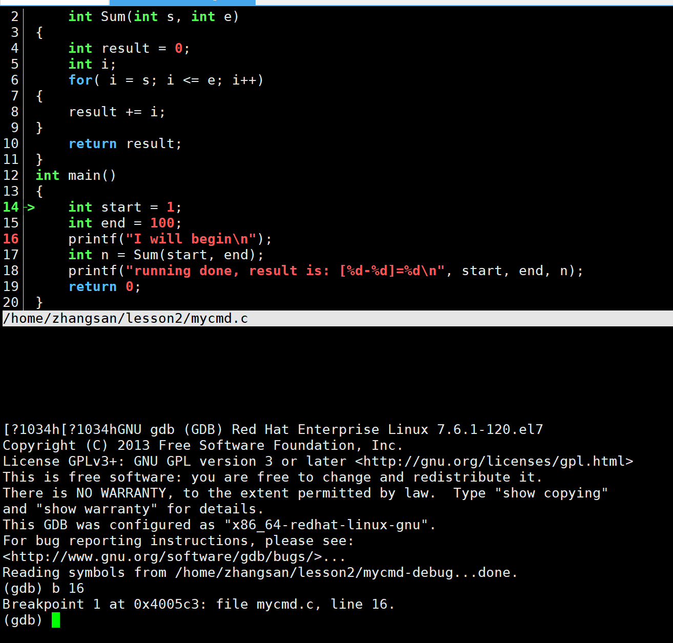 此时此刻,我们可以使用一个cgdb 来进行调试: