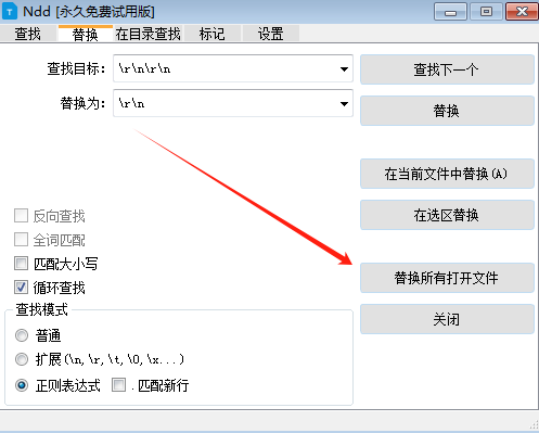 最后关键的一步:点击替换所有打开文件