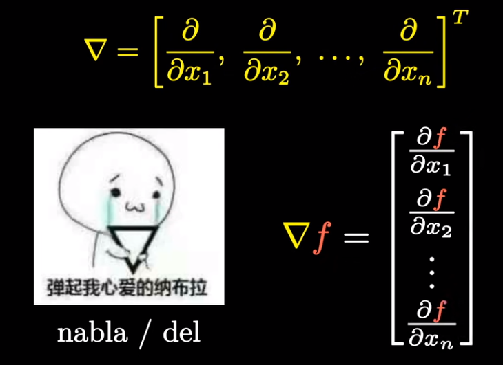 倒三角符号叫nabla/del,也叫哈密顿算子。