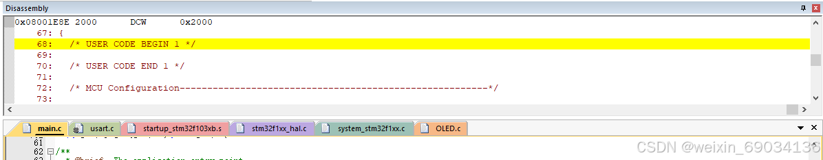 ②Disassembly Window(反汇编窗口),可以显示程序的汇编代码 。