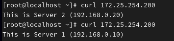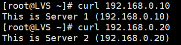 此时,在 lvs-server 上应该能 curl 192.168.0.10 和 curl 192.168.0.20 并看到不同的内容