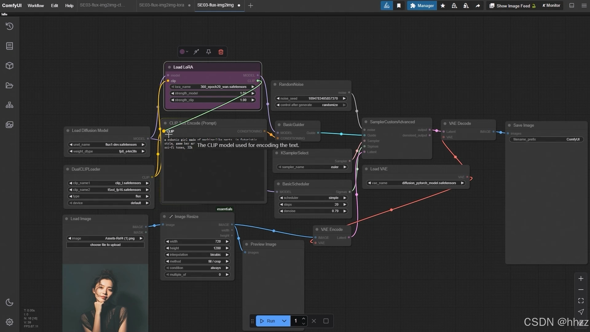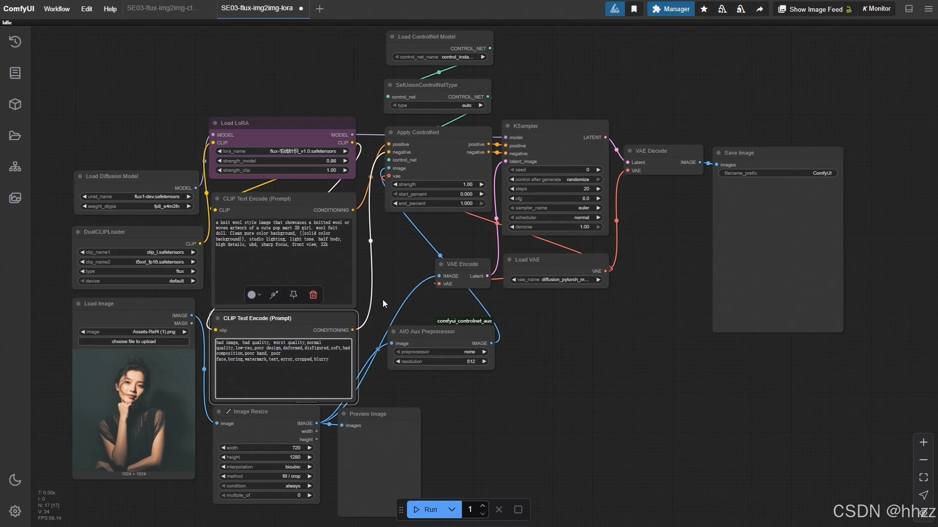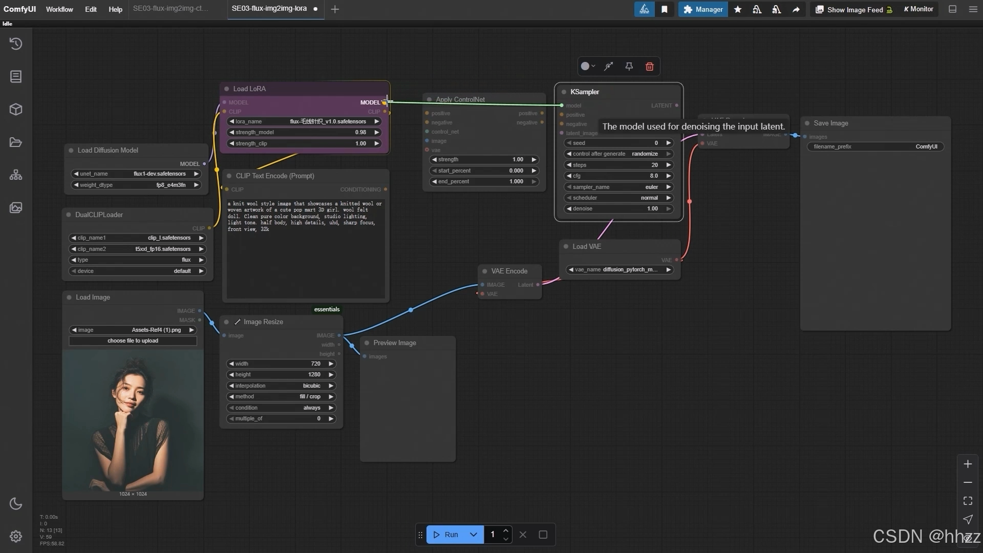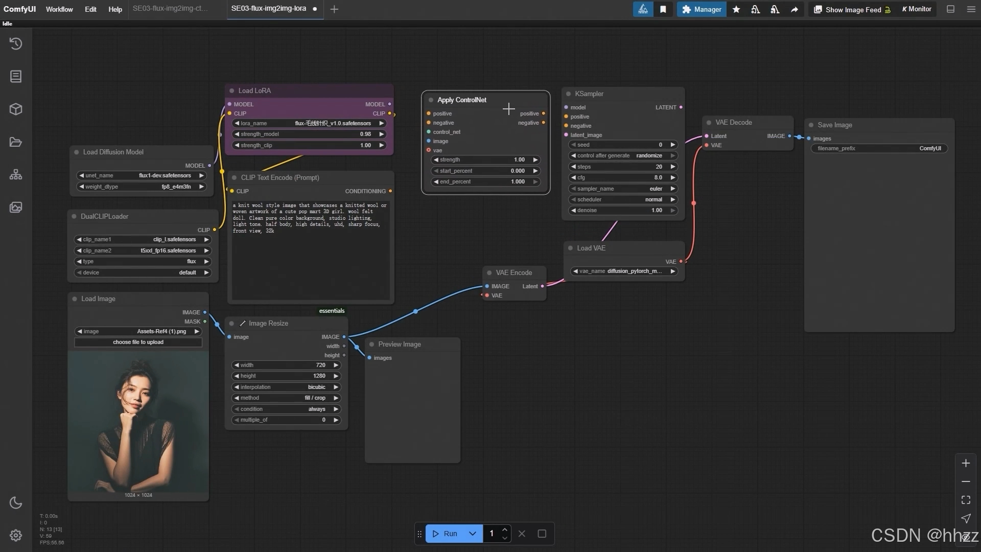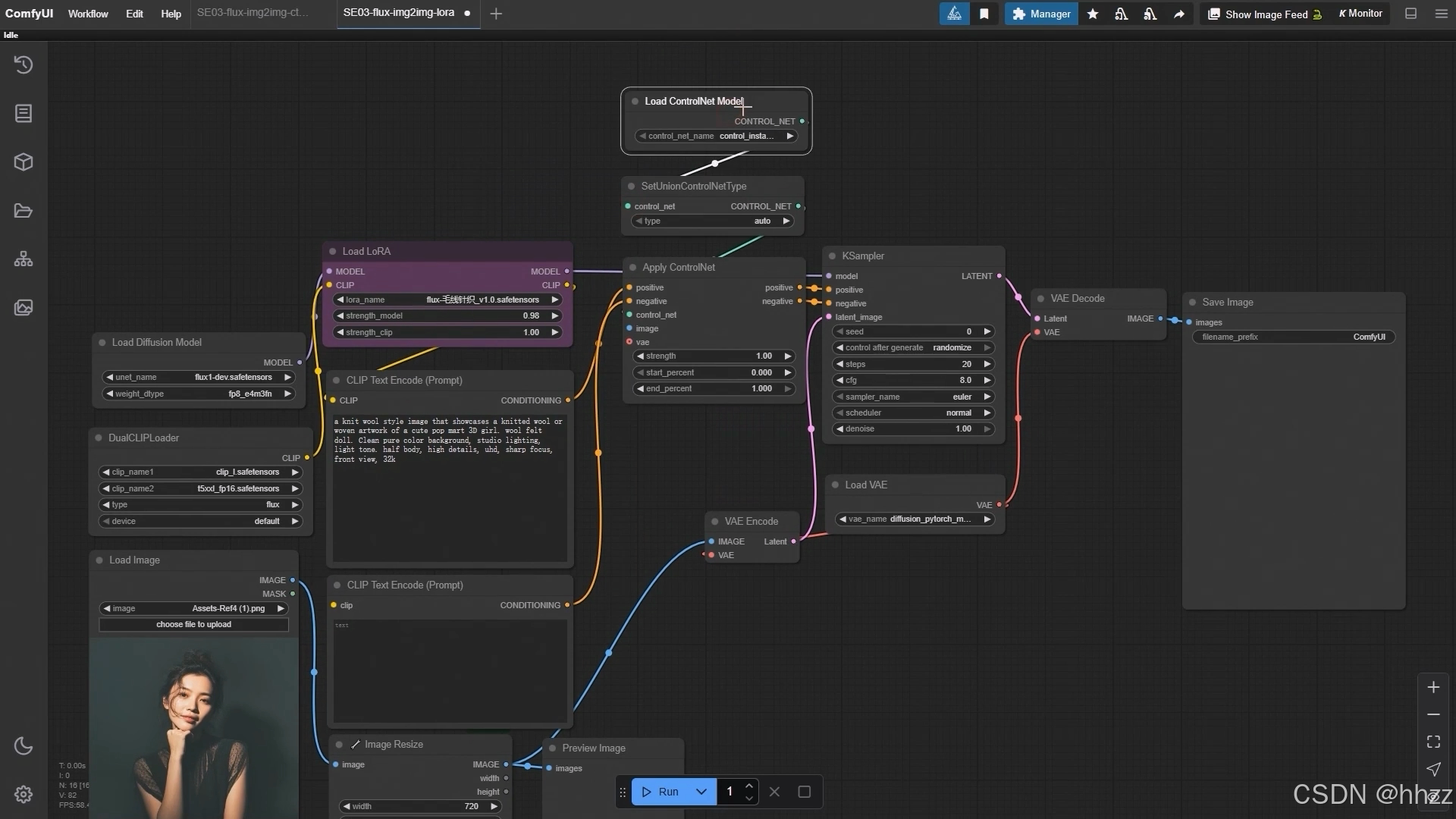 3,ComfyUI 图生图使用 LoRA, 结合 ControlNet 精准控图的使用