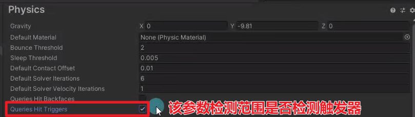 //参数四:是否忽略触发器 UseGlobal-使用全局设置 Collide-检测触发器 Ignore-忽略触发器 不填使用UseGlobal