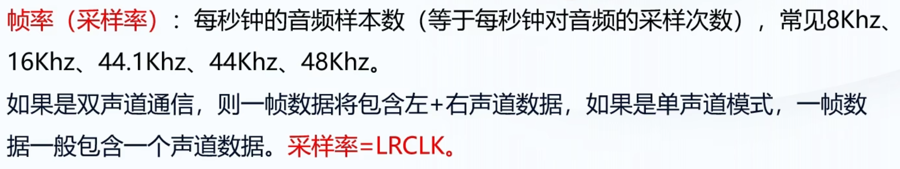 采样率 = LRCLK: