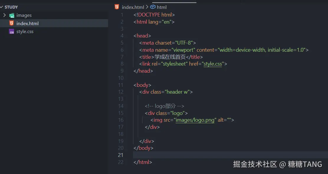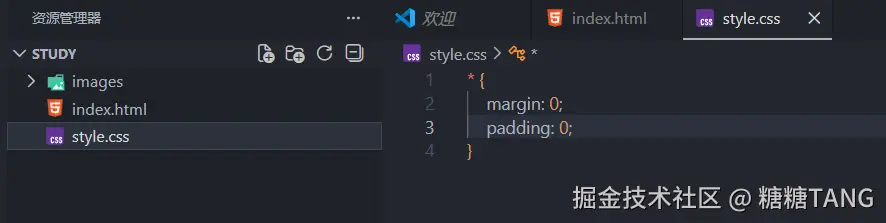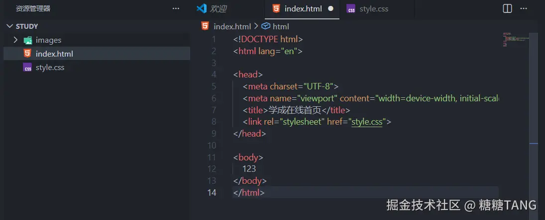 index.html:!符号+Tab键生成模板,link+Taba键添加外链样式;