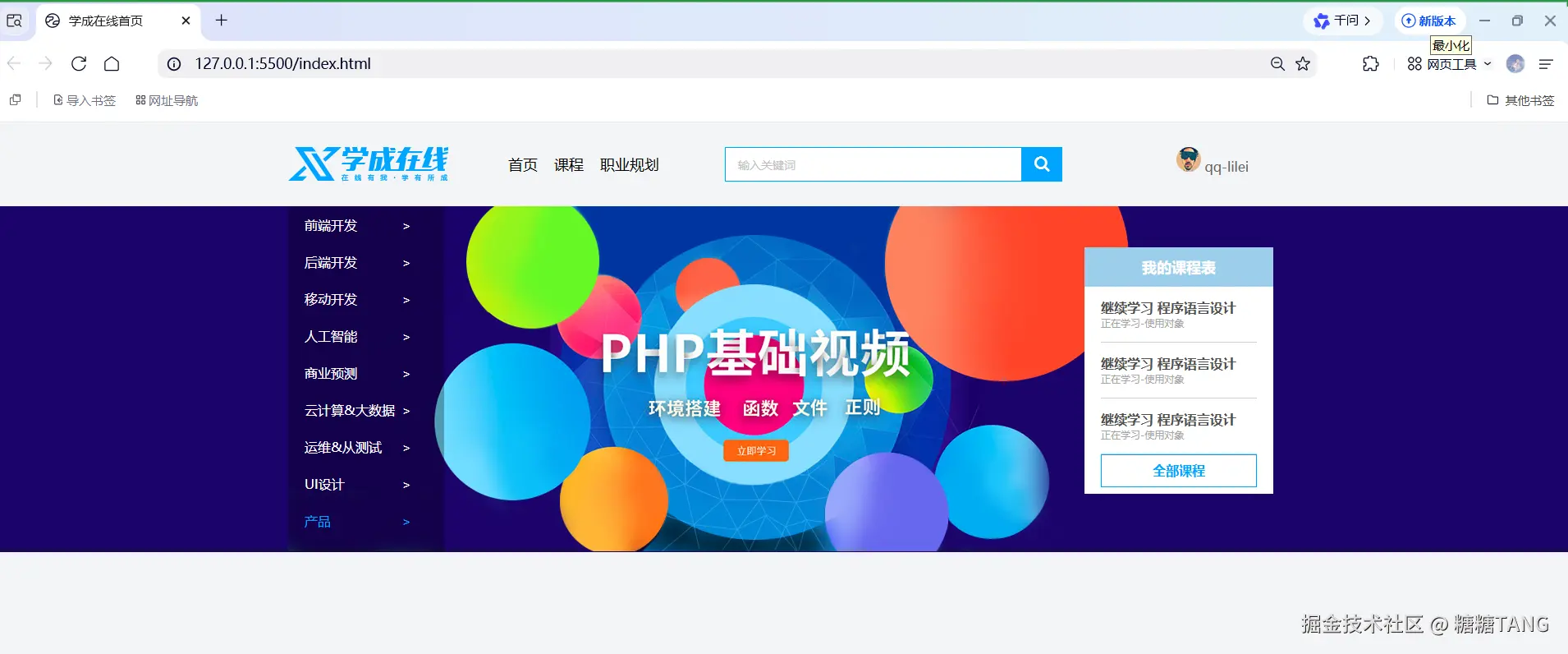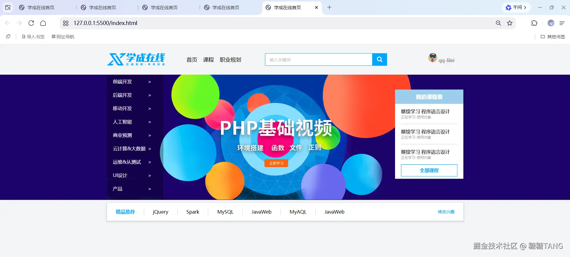 为方便大家查看相关代码,我已将本次学成在线案例练习的代码上传至 GitHub 仓库,链接:[github.com/TANG1110/fr...] 。