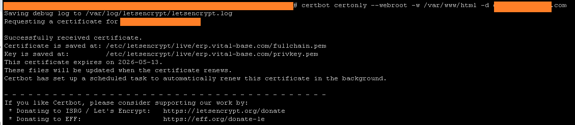 certbot certonly --webroot -w /var/www/html -d yourdomain.com