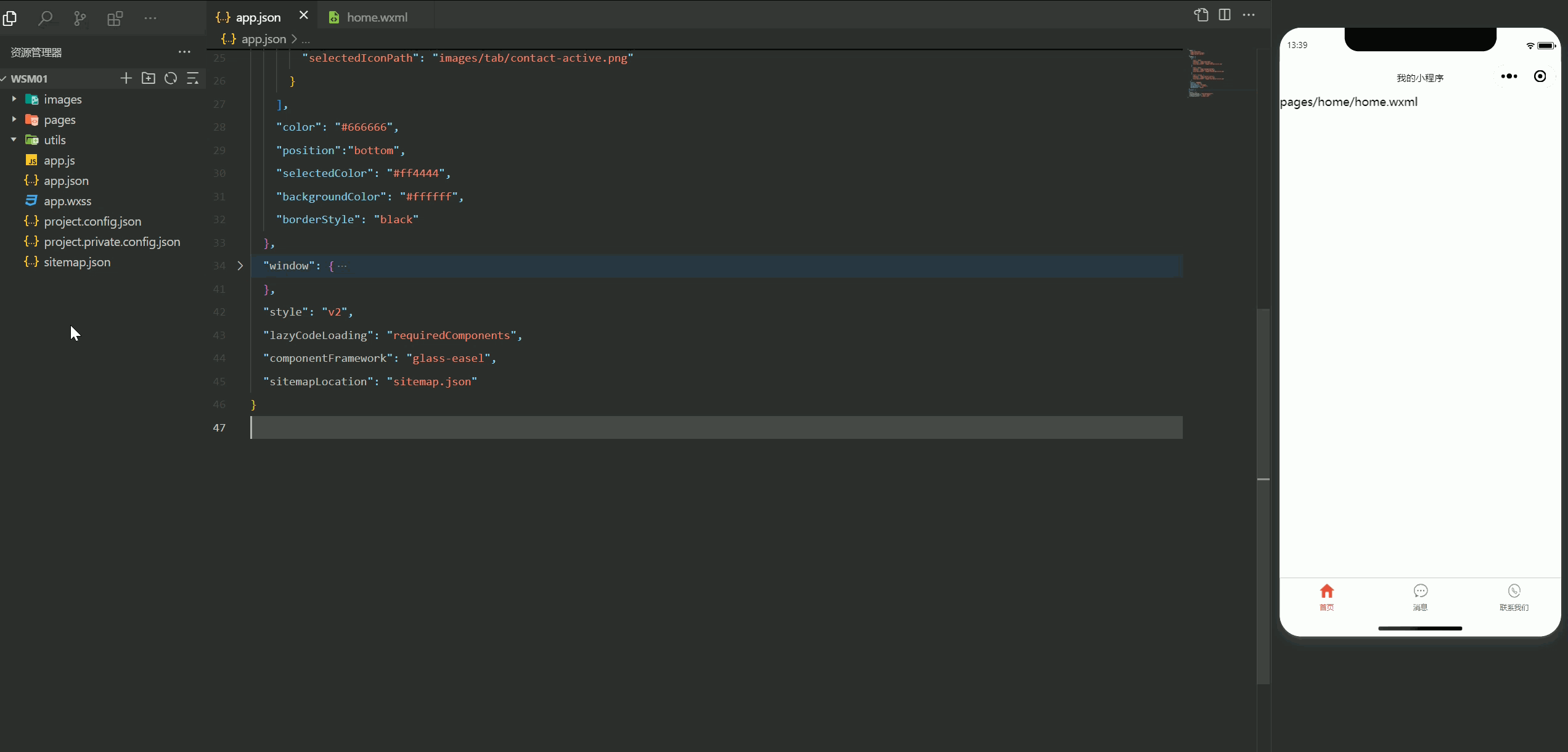 和普通页面一样,在app.json 中配置对应目录,系统会自动创建出对应的文件目录;