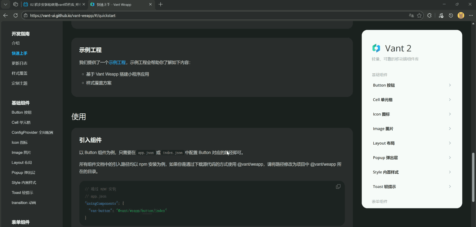 安装完成后,通过 app.json全局引用 的 usingComponents 节点引入组件,即可在页面中直接使用: