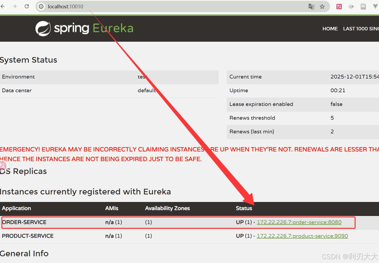 刷新注册中心:http://127.0.0.1:10010/,可以看到 order-service 已经注册到 eureka 上了。