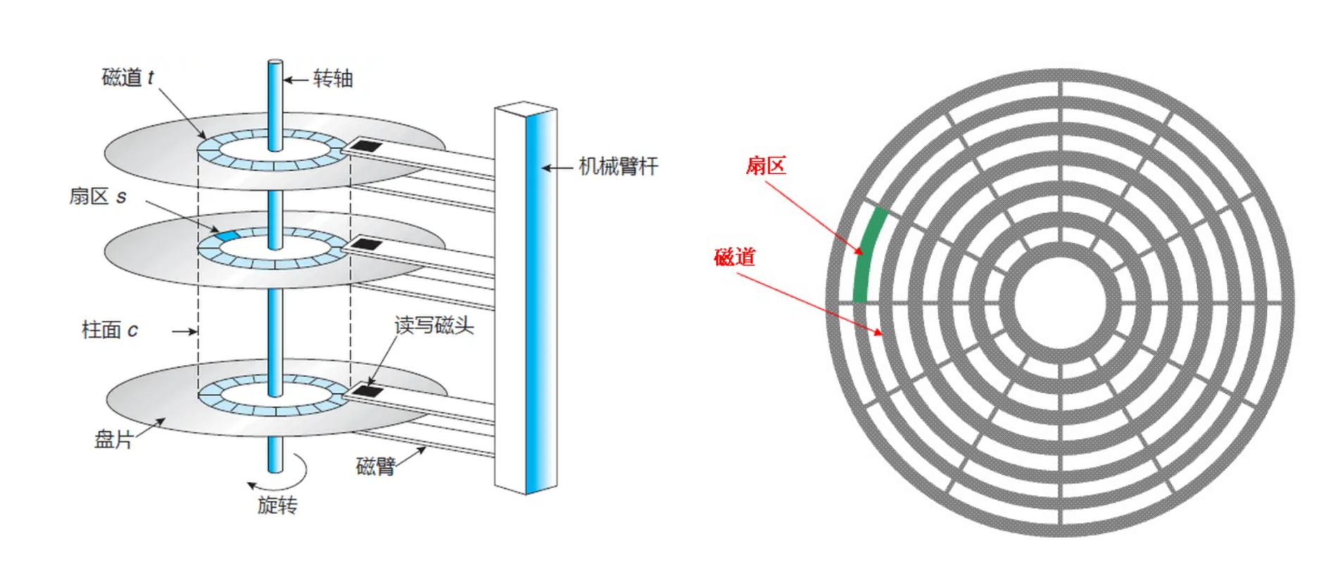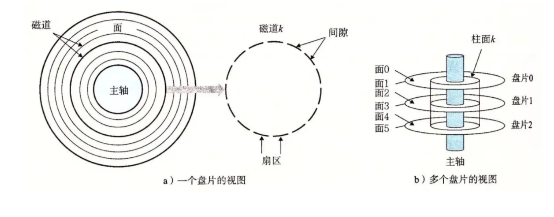 我们要注意将柱面与圆盘分别开来,柱面是统一半径,各圆盘上的磁道总称,柱面不是单指某一个圆盘。