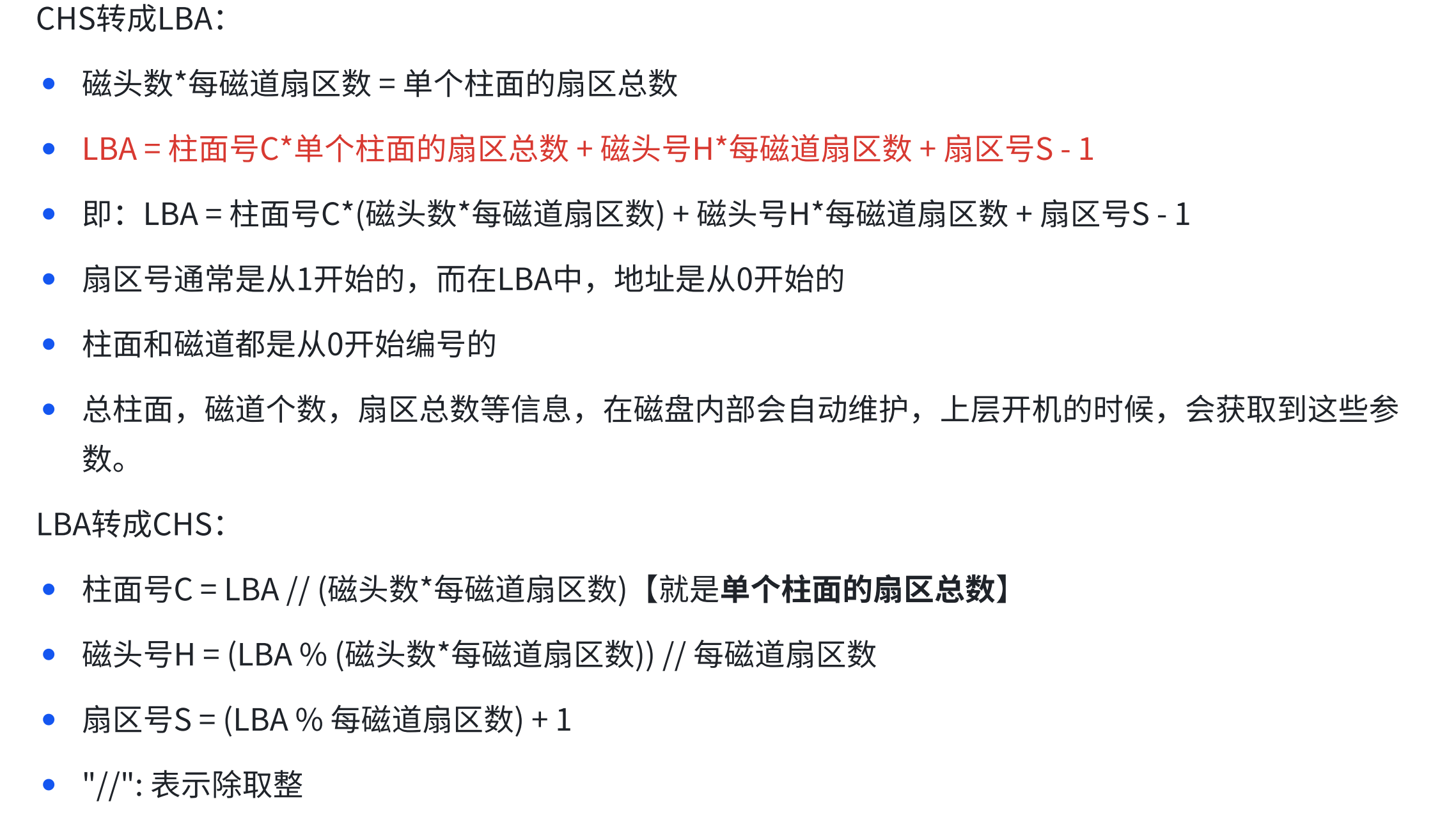 说明白点CHS地址是三维的,而LBA地址是一维线性的。Linux采用LBA地址模式。