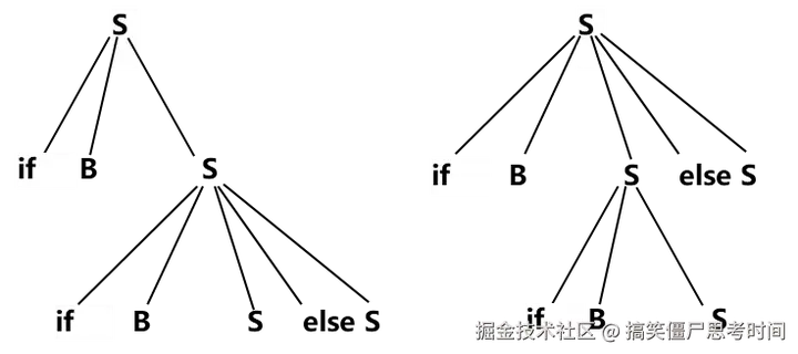 关键是,我感觉这歧义最麻烦的是没有通用算法直接判定,唯一能做的就是反证法,直接举个反例,说这里有个句子有多个语法树,然后这个文法就是带歧义了。