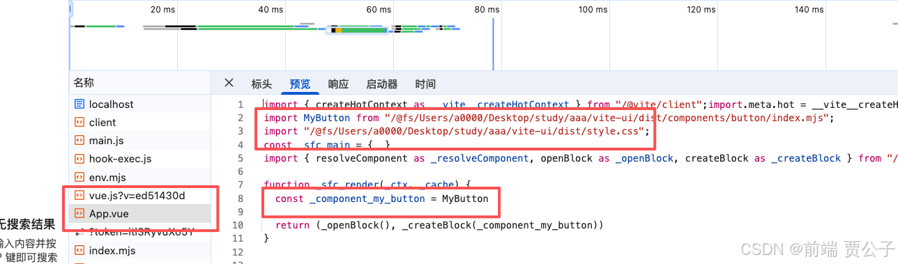 因为我们的组件编译后的调用变成 _resolveComponent("my-button"),组件名称变成了 my-button,而我们在导入的语句是这样的 import MyButton from 'vite-ui/dist/components/button',组件名称又需要变成 MyButton,所以我们需要把匹配到的 my-button 变成 MyButton。