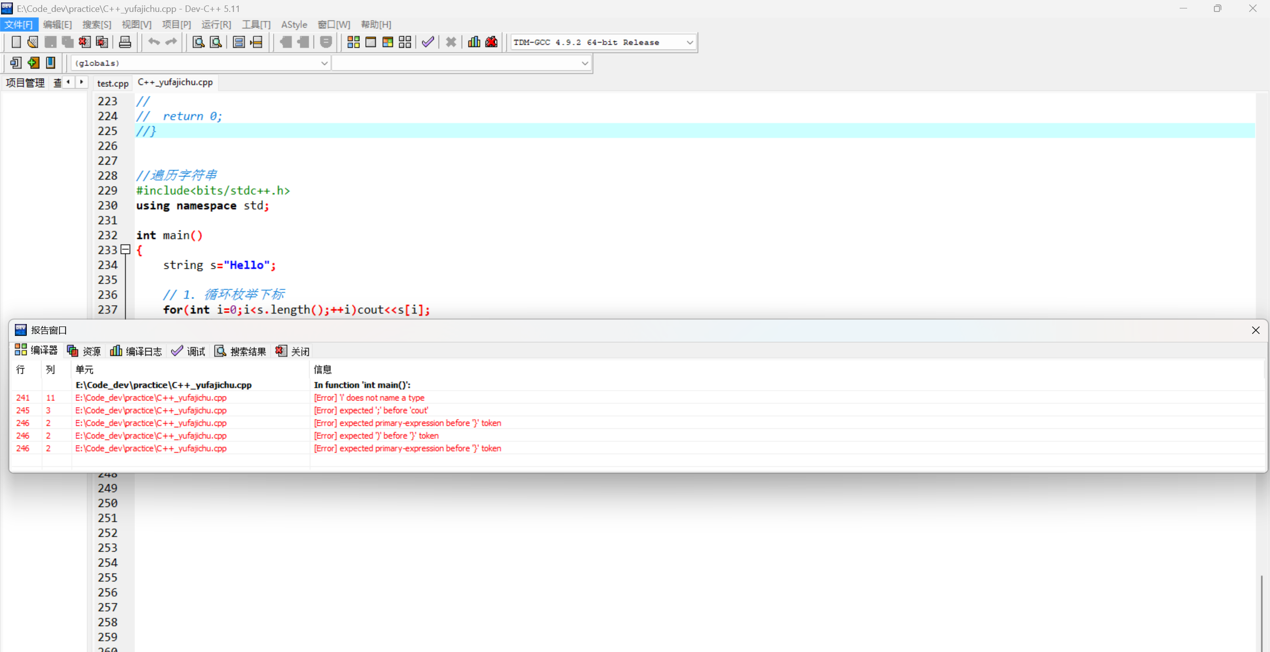 问题一:Dev-c++报告窗口突然消失